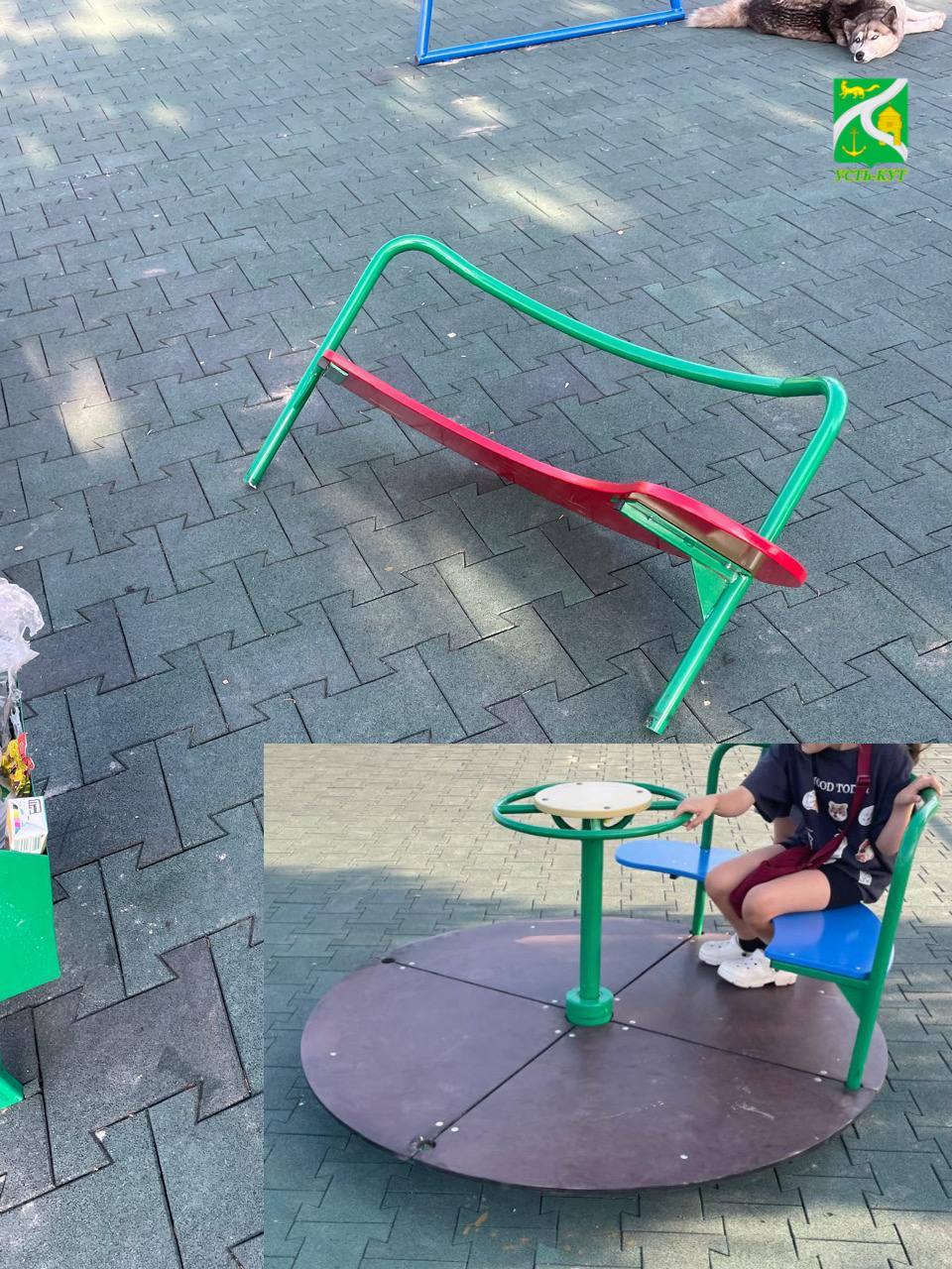 Следующая жертва вандалов - Детская площадка на ул. Радищева. Здесь подрядчики еще даже не завершили работы, а несколько игровых модулей уже выломаны. Причем явно не детьми.