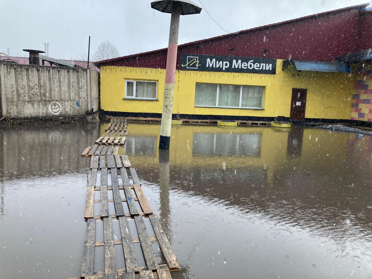 На фоне бравурных отчетов мэрии, о том, что в городе все «тип-топ», коварный сибирский снег повел себя чрезвычайно предательски — взял и растаял. Естественно при отсутствии хотя какой-то мало-мальской ливневой канализации, все эти массы воды затопили дворы, дороги, тротуары.